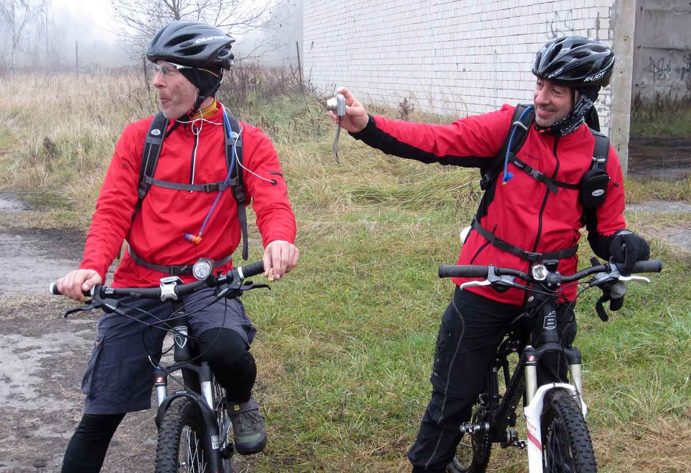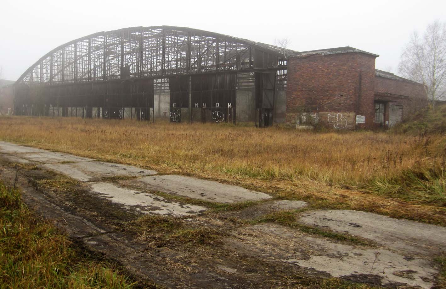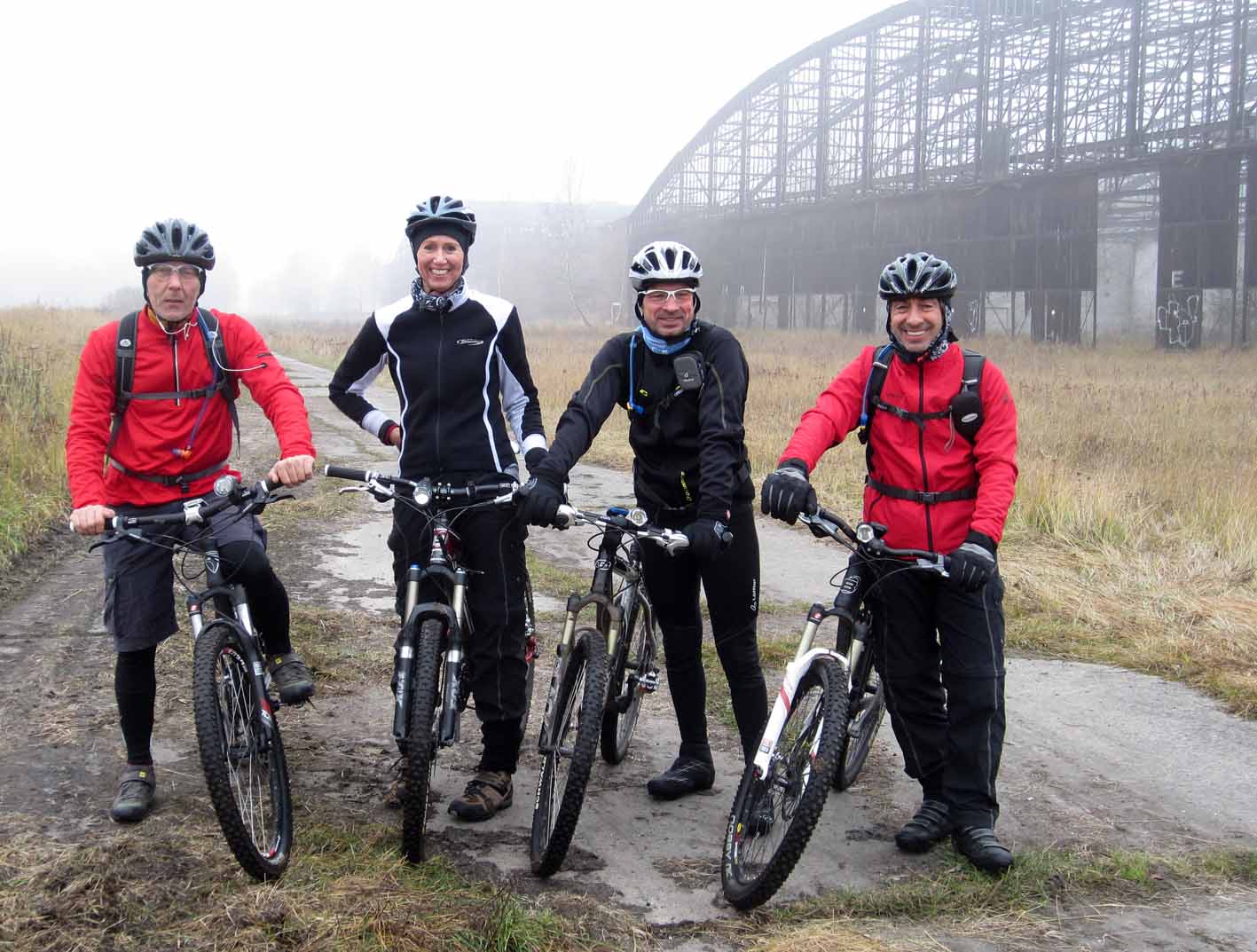 Zu fünft wurden wir uns recht schnell einig, bei dem extrem ungemütlichen Wetter keine allzu lange Tour zu fahren. Ziel war der Fliegerhorst Schönwalde. Auf dem Gelände stehen alte Hallen, Gebäude von vor 1945 und Plattenbauten, die die Besatzungsmacht aufgebaut haben. Da wir unsere Touren gerne mit etwas kulturellem verbinden, bot sich die Besichtigung förmlich an. Sozusagen "Spiel", "Spaß" und "Überraschung".