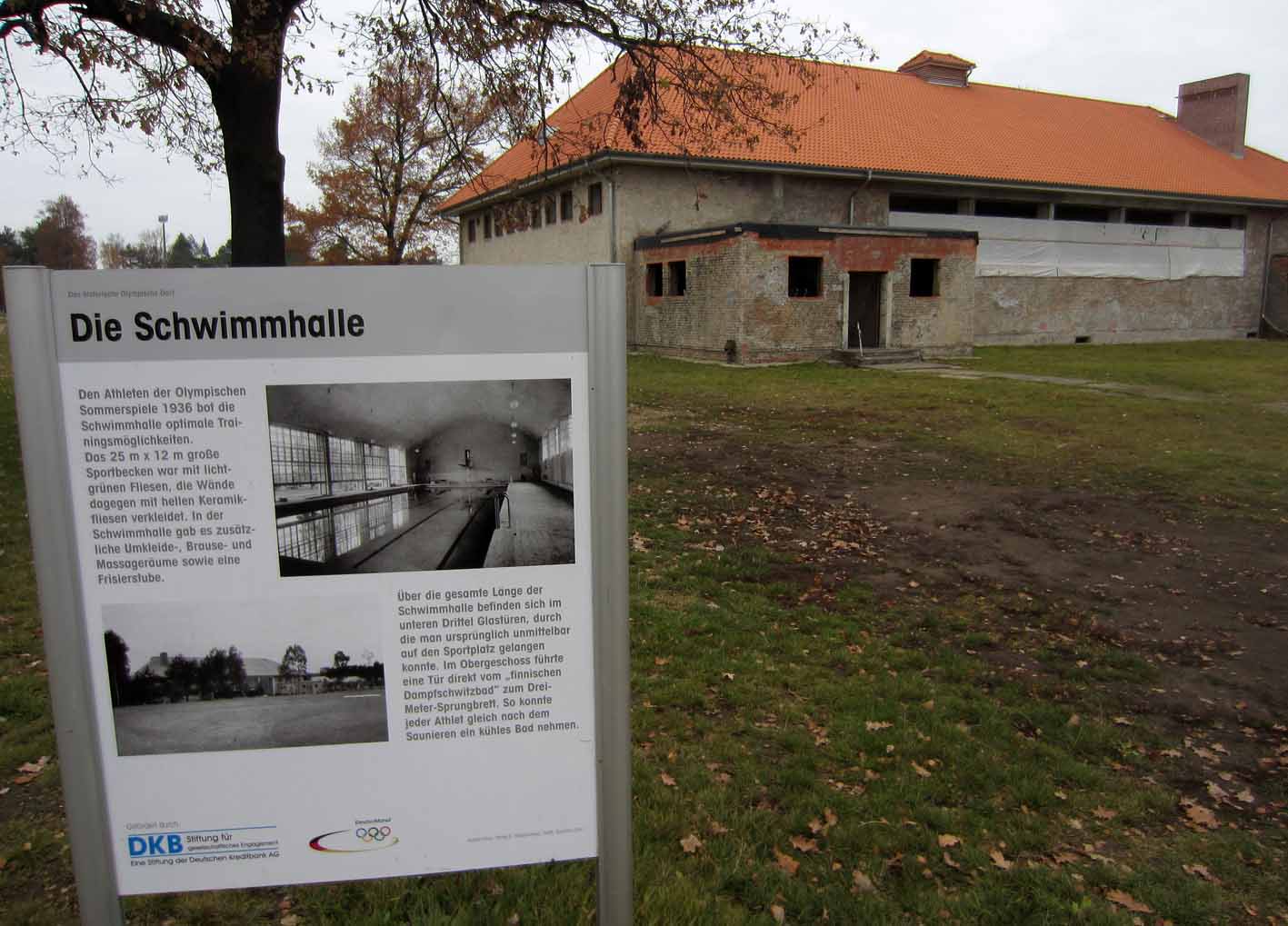 Treffpunkt war heute um 11:00 das Rathaus Falkensee, was für mich immer 46 km An- und Abfahrt bedeutet. Es gibt schlimmeres, schließlich gibt es Punkte für den Winterpokal, verbessert es die Kondition, und für gute Freunde tut man fast alles!!!! Um wenigstens die letzten paar Kilometer bis zum Rathaus in Begleitung zu fahren, verabredete ich mich mit Mike um 10:30 im Schönwalde. Wie sich allerdings zeigte, war dies zu früh, und so drehten wir in F´See noch eine "Nase" um nicht komplett wieder auszukühlen. Zum geplanten Zeitpunkt waren wir zu Neunt am Rathaus, und so machten sich Susanne, Petra*, Daphne, Mike, Thomas, Herbert, Niels, Bernd und ich auf den Weg zum ersten Etappenziel dem Olympischen Dorf. Dort angekommen, lud uns ein großes Schild ein, das Dorf zu besuchen, das Tor stand offen, und so fuhren wir hinein, um uns ein bisschen kulturell zu bilden: