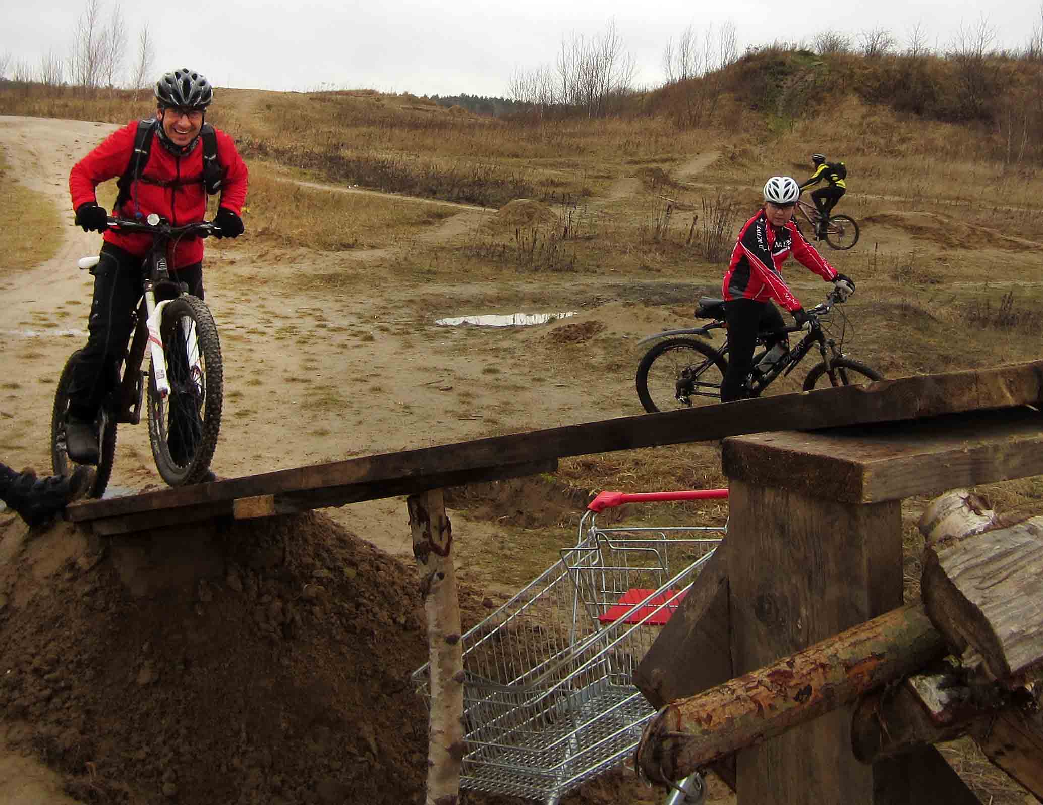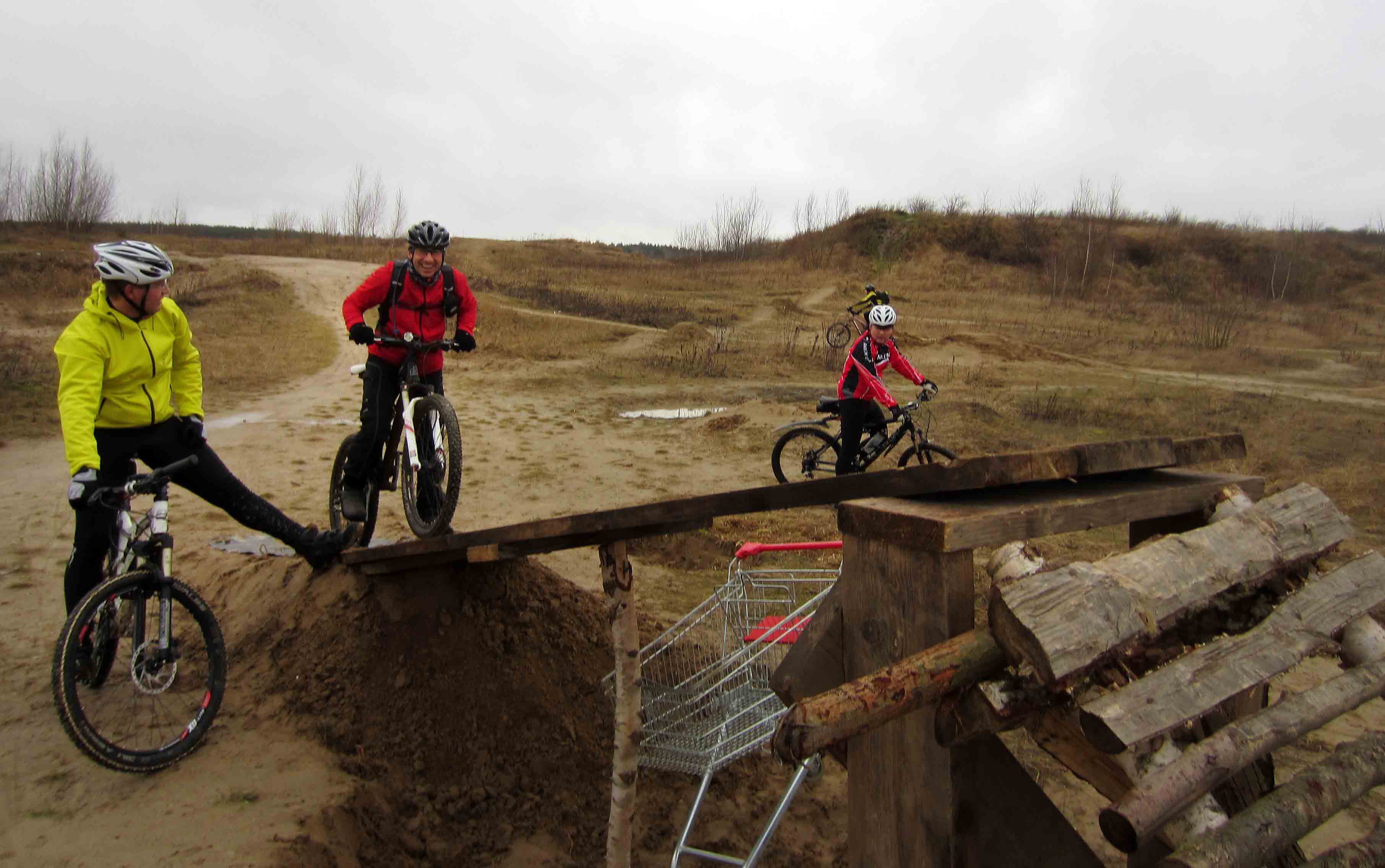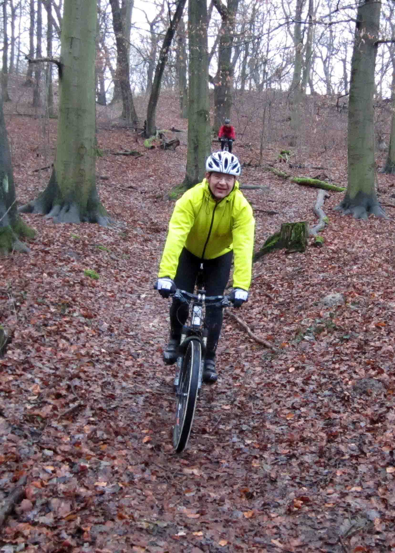 Nach kurzen Schlauchwechseln ging es dann langsam im MTB-Gefilde. Wer Mike kennt weiß, jeder noch so kleine Singletrail, mit Ästen und Baumstämmen übersäte Wege, Strecken mit vielen Hügeln, und mit Morast versehene Pfade wurden eingeschlagen. Kein leichtes Unterfangen für unsere Crosser. Bevor es jedoch richtig in die Pampa ging, brüllte Adrian wieder Panne......., die Zweite, und wieder am Vorderad, glücklicherweise die letzte an diesem Tag. Von Marens "geschlossener" Hinterradbremse mal abgesehen.