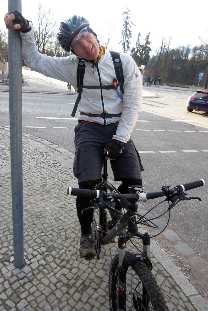 Tourstart war um 10:30 S-Bhf Henningsdorf, was für mich heute mal nur eine 9km lange Anreise bedeutet. Bei -2°C machte ich mich auf den Weg, und traf in Henningsdorf auf 14 weitere "Irre" die diese Tour heute mitfahren wollen. Unerwartet und sehr erfreulich, erschienen auch die Ghettokinder Daphne und Niels mit ihren Crossern. Somit waren 9 Havellandriders dabei, Susanne, Daphne, Heike, Maren, Frank, Mike, Niels, Adrian und Thomas. Kurze Begrüßung, und wir machten uns auf dem Weg, bei diesen Temperaturen steht Keine/r gerne länger als nötig. Weit sollten wir allerdings nicht kommen, und Adrian ereilte die erste Panne.