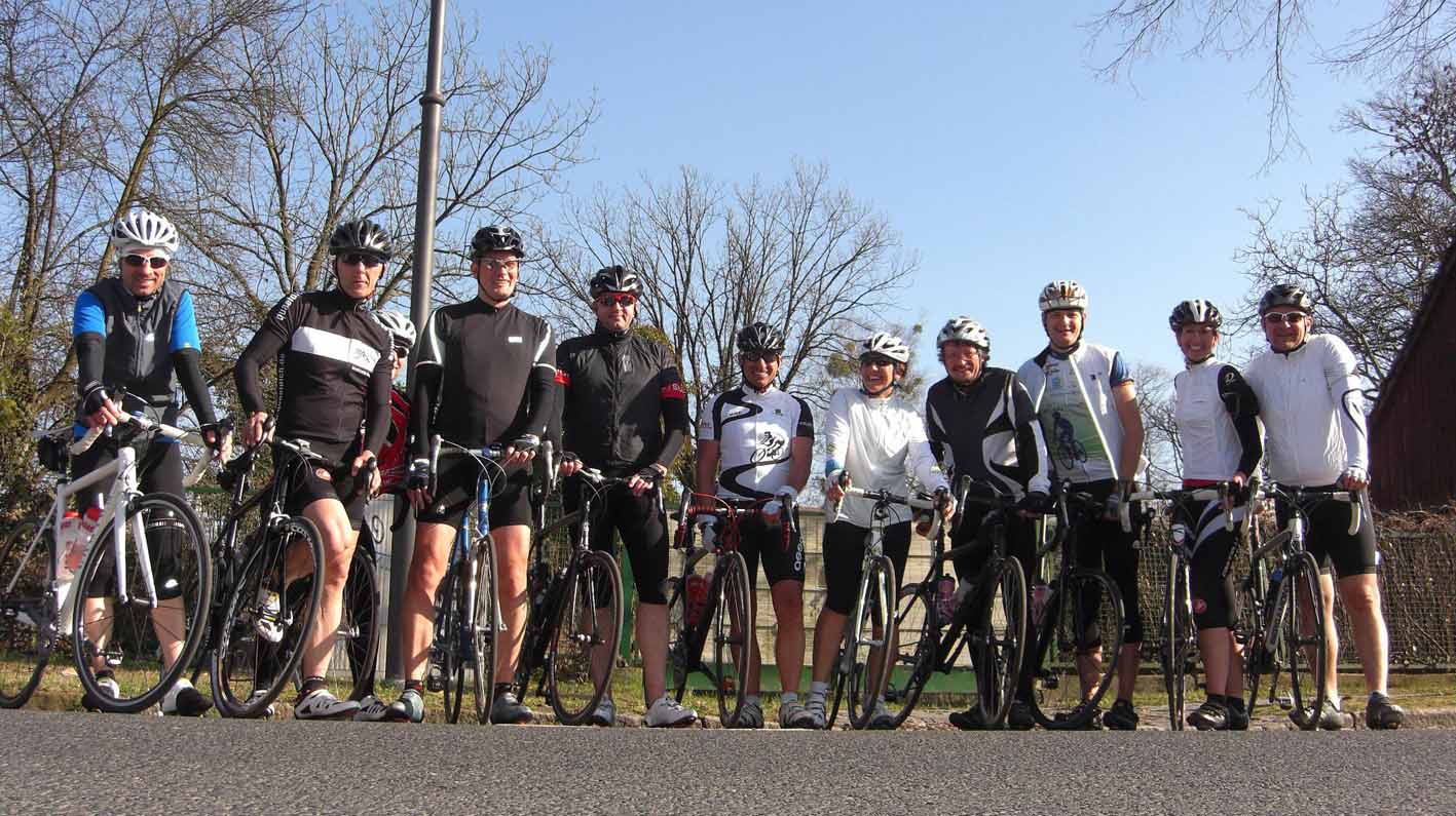Kurze Begrüßung und die Gruppe setzte sich in Richtung Fehrbellin in Bewegung. Die Wechsel klappten gut und harmonisch, so kamen wir trotz des lästigen Gegenwindes gut voran. Über Nauen und Paulinenaue erreichten wir den