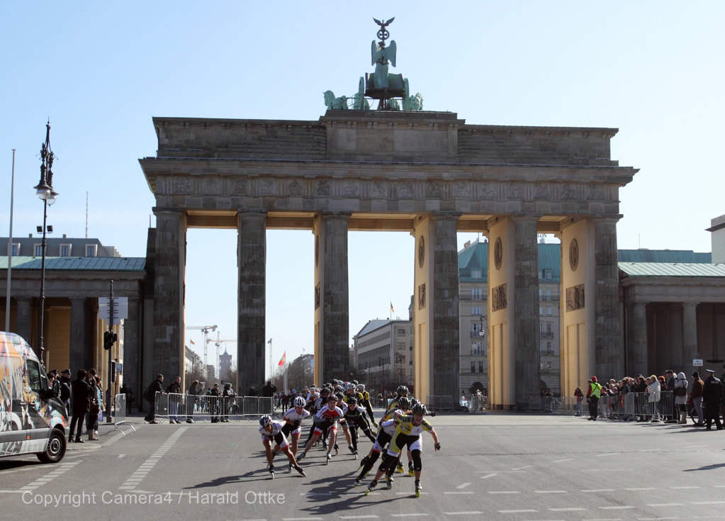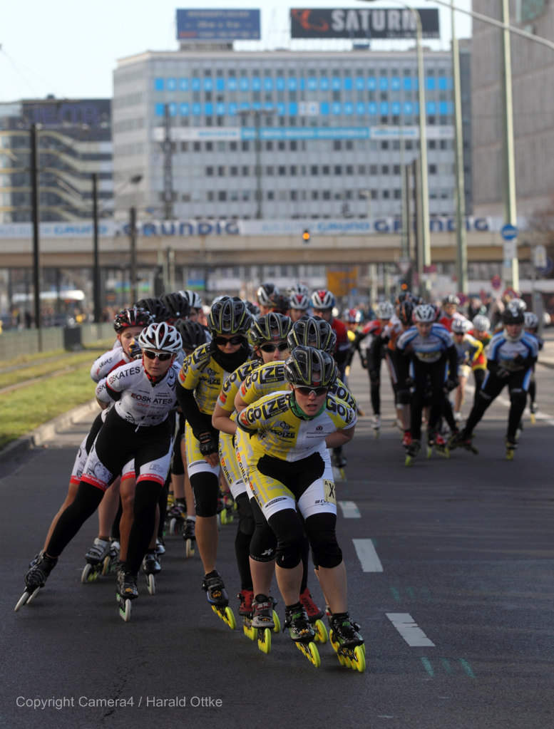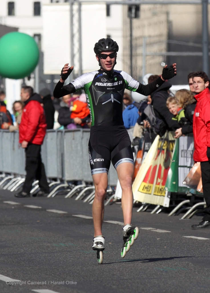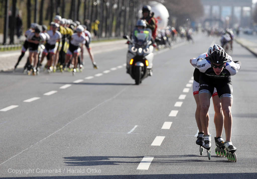 Also machte ich mich gegen 10:10 mit den Skatern auf den Weg. Zuerst wurden die Damen auf die Strecke geschickt, ein paar Minuten später die Herren. Auf dem 17.Juni wurden die Damen eingeholt, und bereits am Erst-Reuter-Platz war es um die Endscheidung geschehen. Bart Swings aus Belgien setzte sich mit einem kurzen Zwischensprint ab, und gewann souverän das Rennen. Damit war die Spannung, auch für mich schnell verflogen.