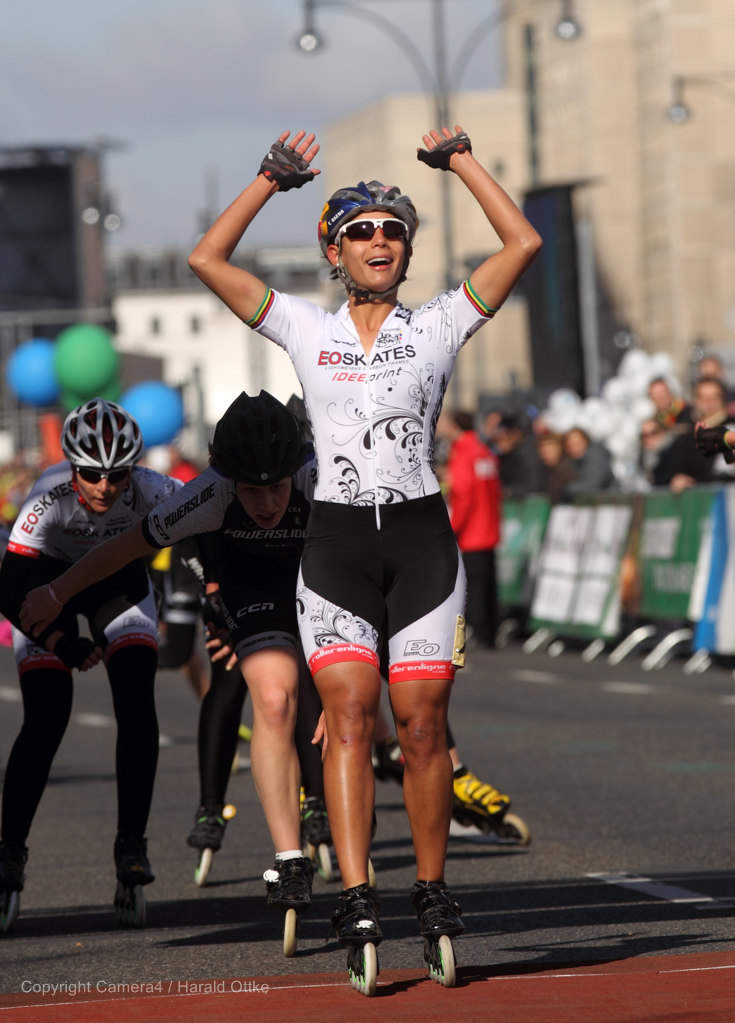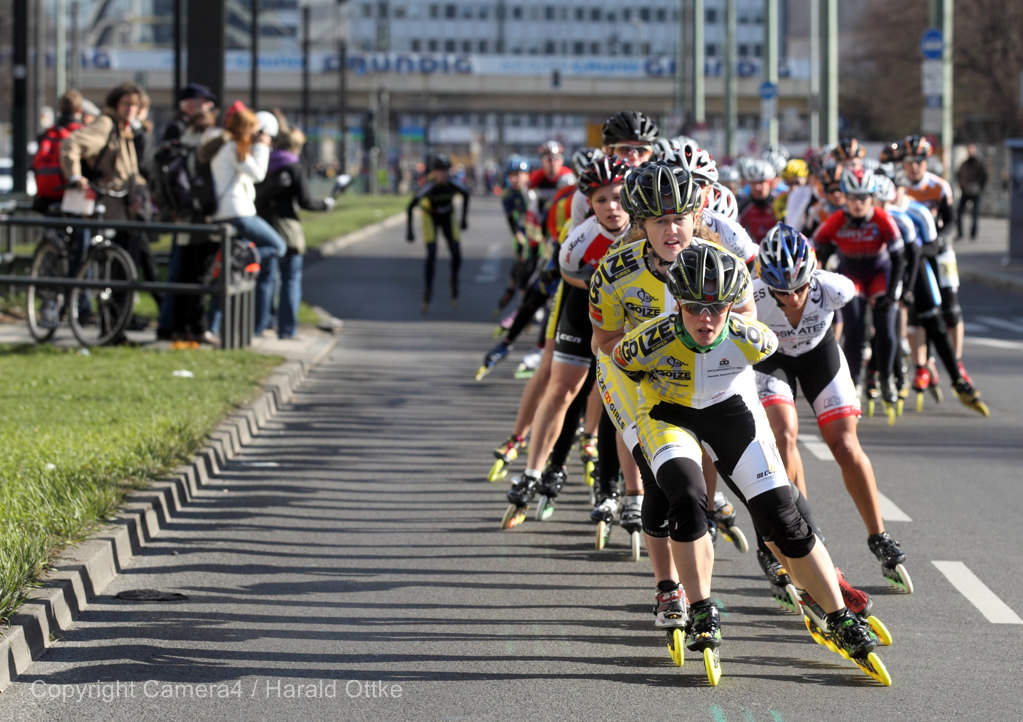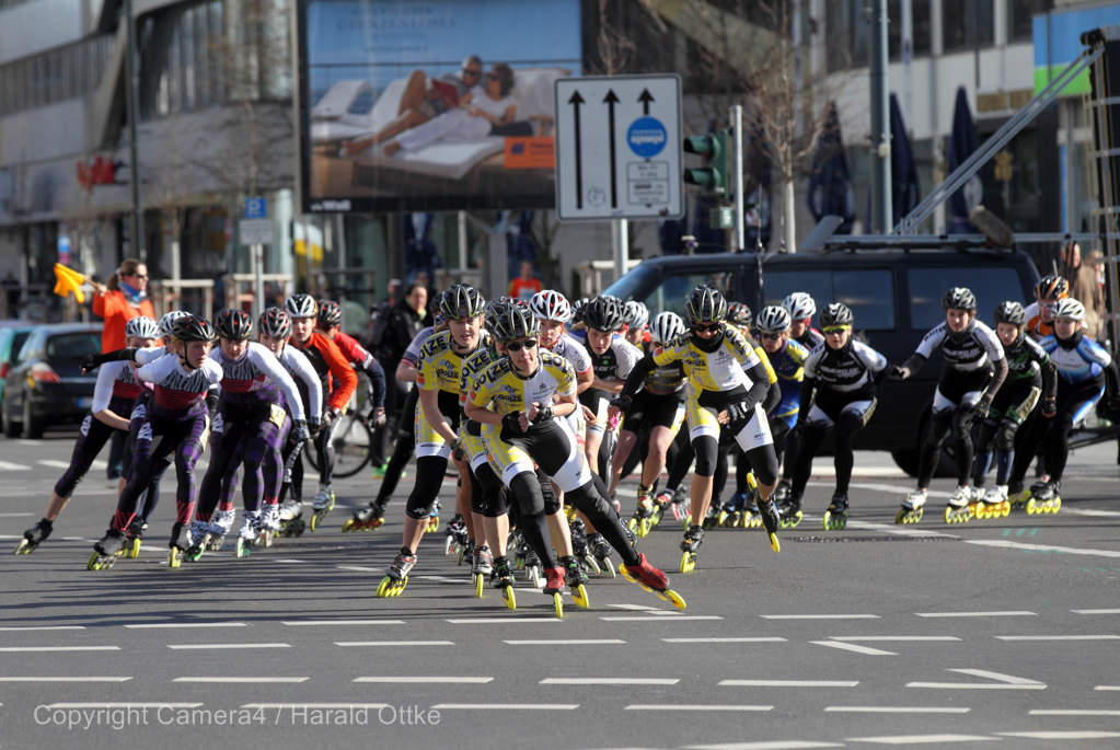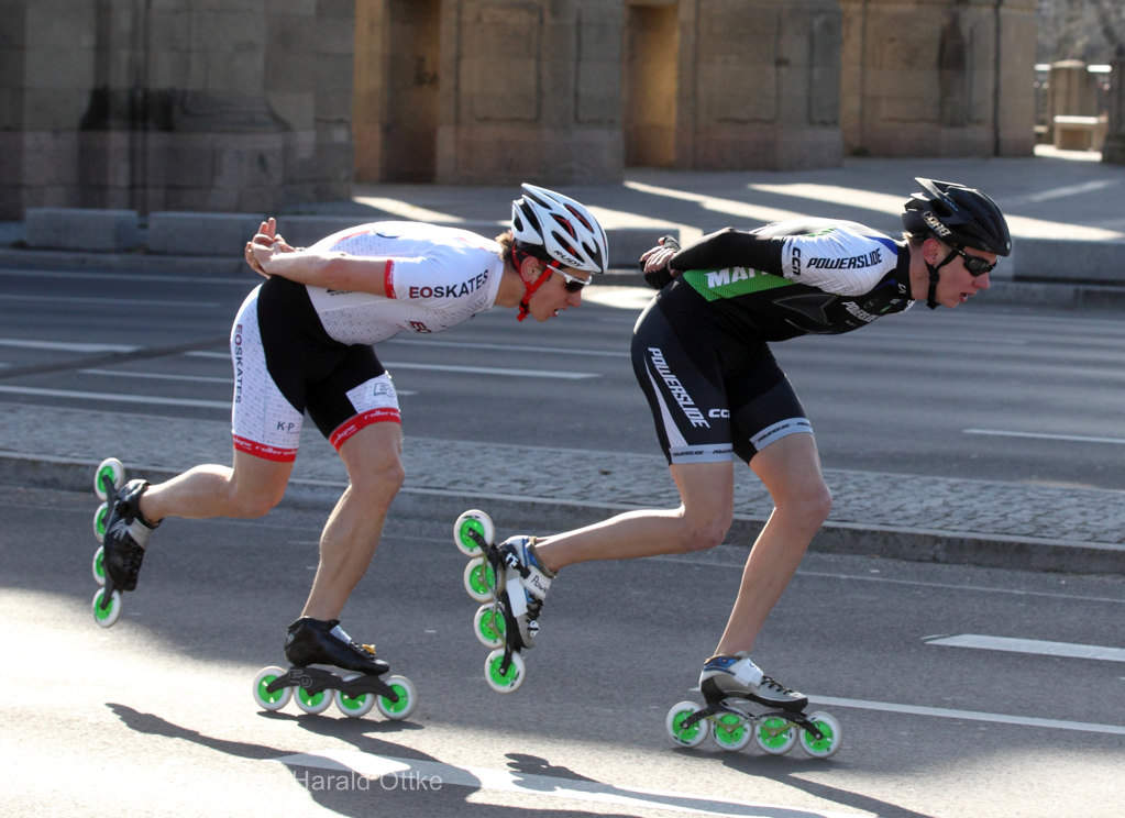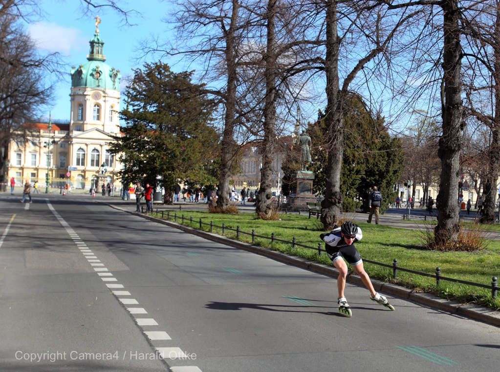 Also machte ich mich gegen 10:10 mit den Skatern auf den Weg. Zuerst wurden die Damen auf die Strecke geschickt, ein paar Minuten später die Herren. Auf dem 17.Juni wurden die Damen eingeholt, und bereits am Erst-Reuter-Platz war es um die Endscheidung geschehen. Bart Swings aus Belgien setzte sich mit einem kurzen Zwischensprint ab, und gewann souverän das Rennen. Damit war die Spannung, auch für mich schnell verflogen.